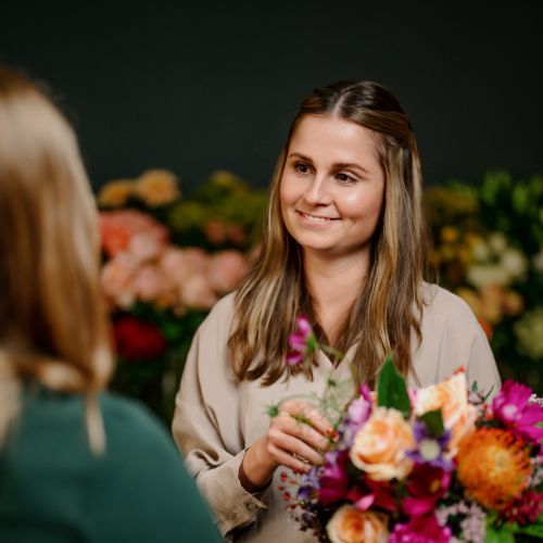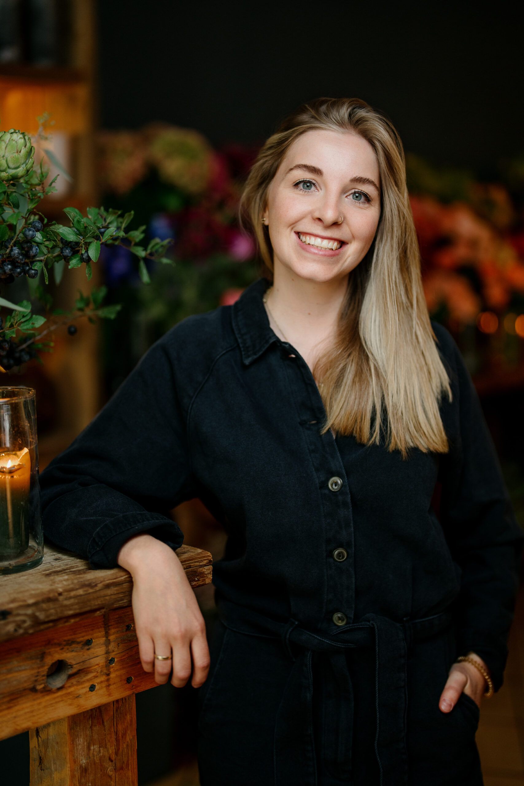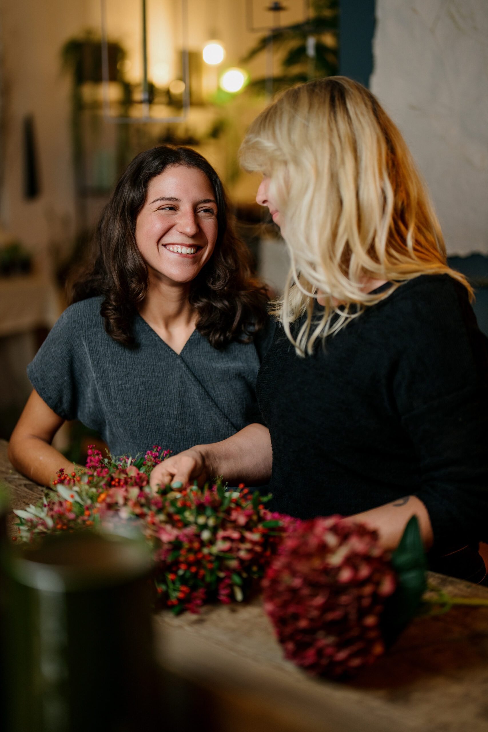 Fotografiert wurde im laufenden Betrieb. Also mitten im Alltag, während geschnitten, gebunden und gelacht wurde. Ich wollte Bilder schaffen, die echt wirken, nicht gestellt. Dazu gehören Portraits des Teams, Detailaufnahmen der Werkbank, die Textur von Blütenblättern im Gegenlicht und der warme Farbton des Holztresens. So entsteht eine Serie, die Nähe und Handwerk verbindet – perfekt für Social Media, wo Authentizität wichtiger ist als jede Hochglanzinszenierung.