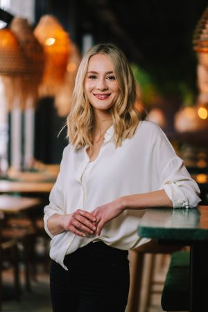 Wir fotografierten an zwei sehr unterschiedlichen Orten: einem Café in München mit warmem, natürlichem Licht und der Musikhochschule, ihrem zweiten Zuhause. Das Wechselspiel aus urbanem Ambiente und bühnenartiger Atmosphäre brachte genau die Balance, die wir suchten: Intimität und Professionalität.