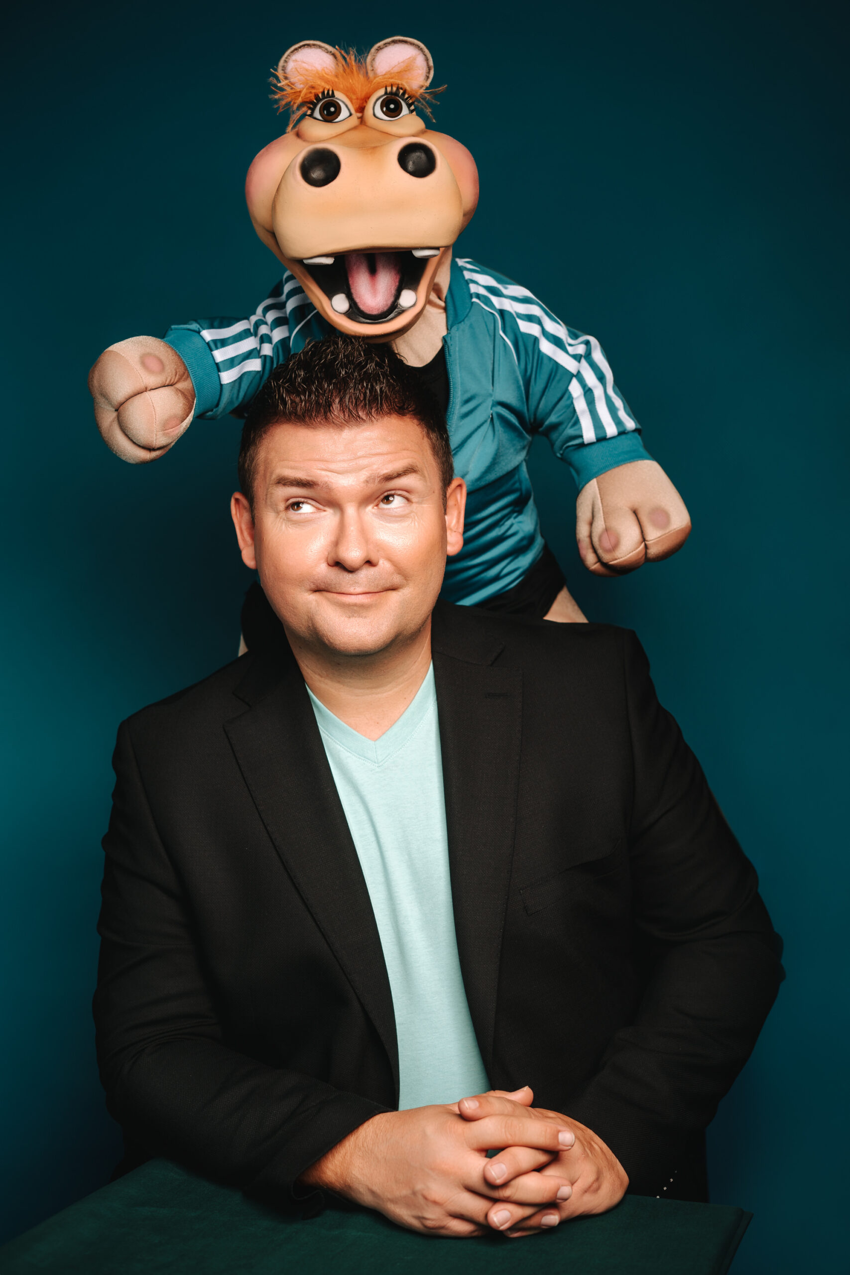 Sebastian Reich ist weit mehr als der Typ mit der Puppe. Ziel war es, in den Bildern den Menschen hinter dem Comedian sichtbar zu machen: humorvoll, aber nicht klamaukig. Der Blick ins Bild sollte nach Bühne riechen, aber nicht nach Showmaske.